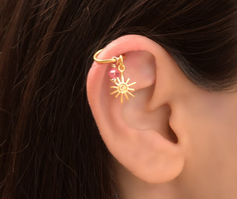 Gold Cartilage Piercing : The Complete Guide To Helix Piercing Jewelry Pierced. For cartilage you will need to leave your piercing earring in for at least 12 weeks. Cartilage, daith, tragus, rook earrings & more. Bumps are common with cartilage piercings, and they can. This means we have a variety of materials such as brass, 14kt gold, niobium, silicone, stainless steel, and titanium for your skin in mind. Motifs include the evil eye and hamsa hand.